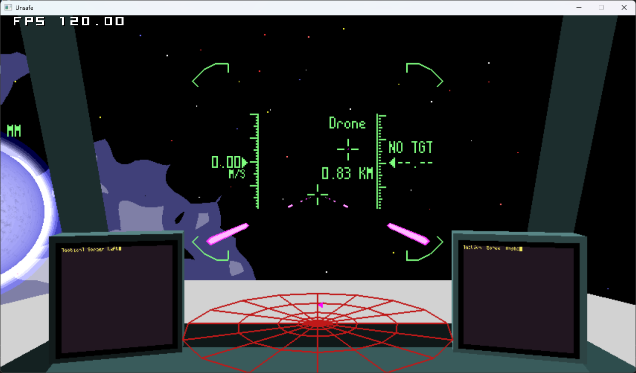 - Started on giving other ships the ability to actually fly around instead of just sit in one place: this included adding the first actually useful behavior to the AI system ("fly to point") and then implementing a basic ability to rotate towards the direction desired and get moving. As an interesting side note, I first implemented it planning to have the AI slow down to turn and then accelerate when pointing to the target, but got it backwards by accident only to discover that it looks much better if the AI accelerates on turns, giving it these great swoopy motions. As another interesting side note, my game has rough airplane control style for the player (roll the craft to the desired angle then pull back to ascend) but it was proving difficult to translate the AI's motion into those control inputs. I decided to just let AI ships rotate towards their desired angle and it looks fine.